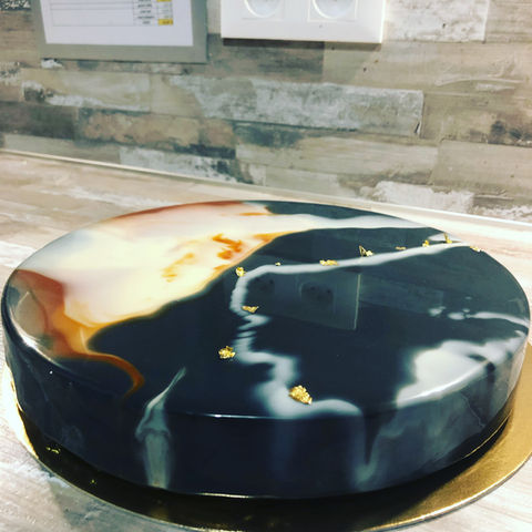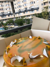 Ganache montée aux fruits de la passion ,un confit passion citron vert, un biscuit moelleux , un craquelin au
